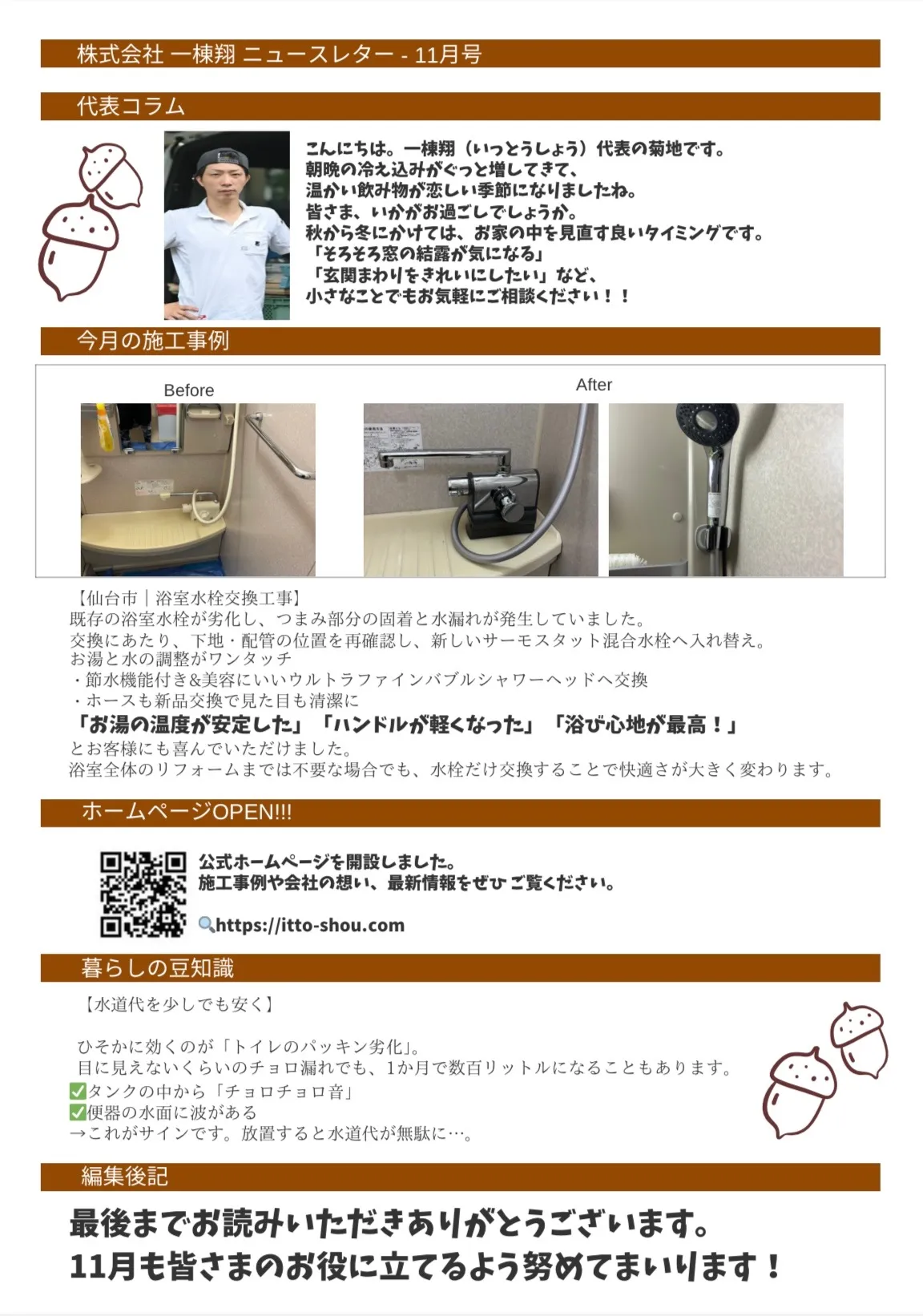 🍁一棟翔ニュースレター 11月号できました!