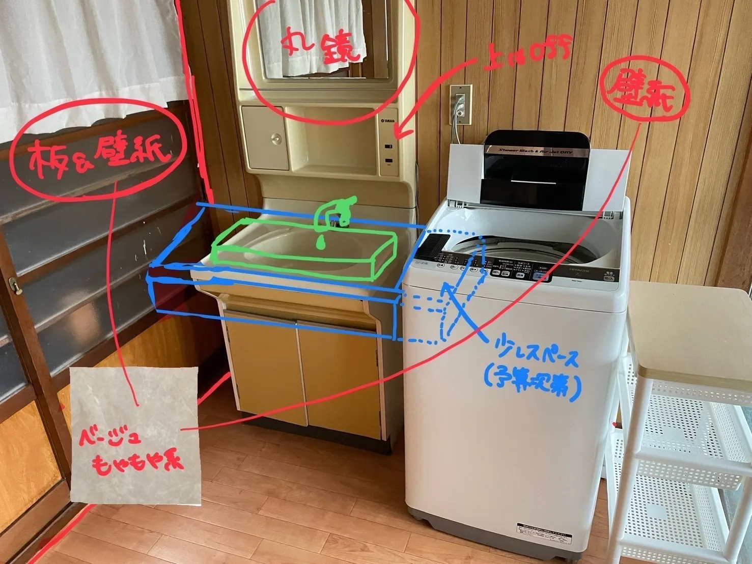 かつて引き戸だった部分を壁に変更することで、空間の印象が大きく変化。視線の抜けを抑え、落ち着きのある洗面所へと生まれ変わりました。壁面には木目とグレーの素材を組み合わせ、機能性とデザイン性を両立した仕上がりに。